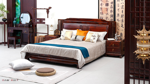 一個舒適、健康的臥室,更能為睡眠帶來安寧、舒心。紅木大床溫潤的質感,搭配柔軟的床品,編織出美好睡眠體驗。